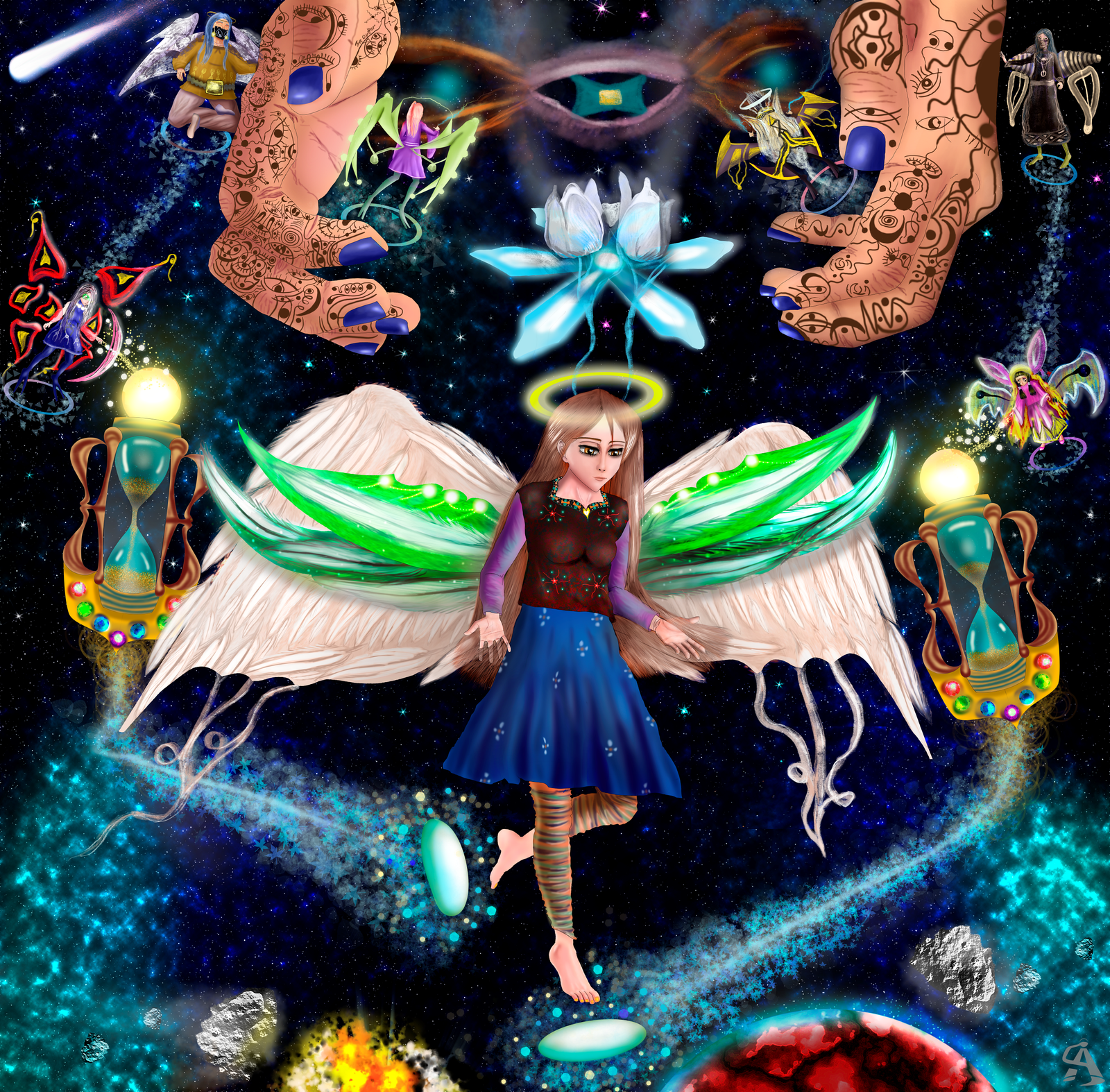 Below are my personal artistic works, created from scratch, incorporating mediums such as raster, vector, 3D, and traditional. I follow a theme-based approach by envisioning an idea and then using the desired medium to reach that idea. The journey towards it is like wandering through a maze, trusting the participation, and the goal is the happiness that comes with that trust.